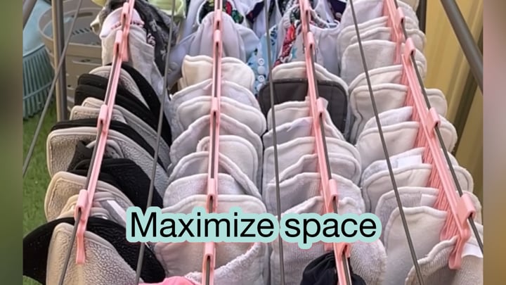 Once the loomey is full, clip it onto your washing line or airer; just be aware that while it attaches to most washing lines, some airers might be too thick.
